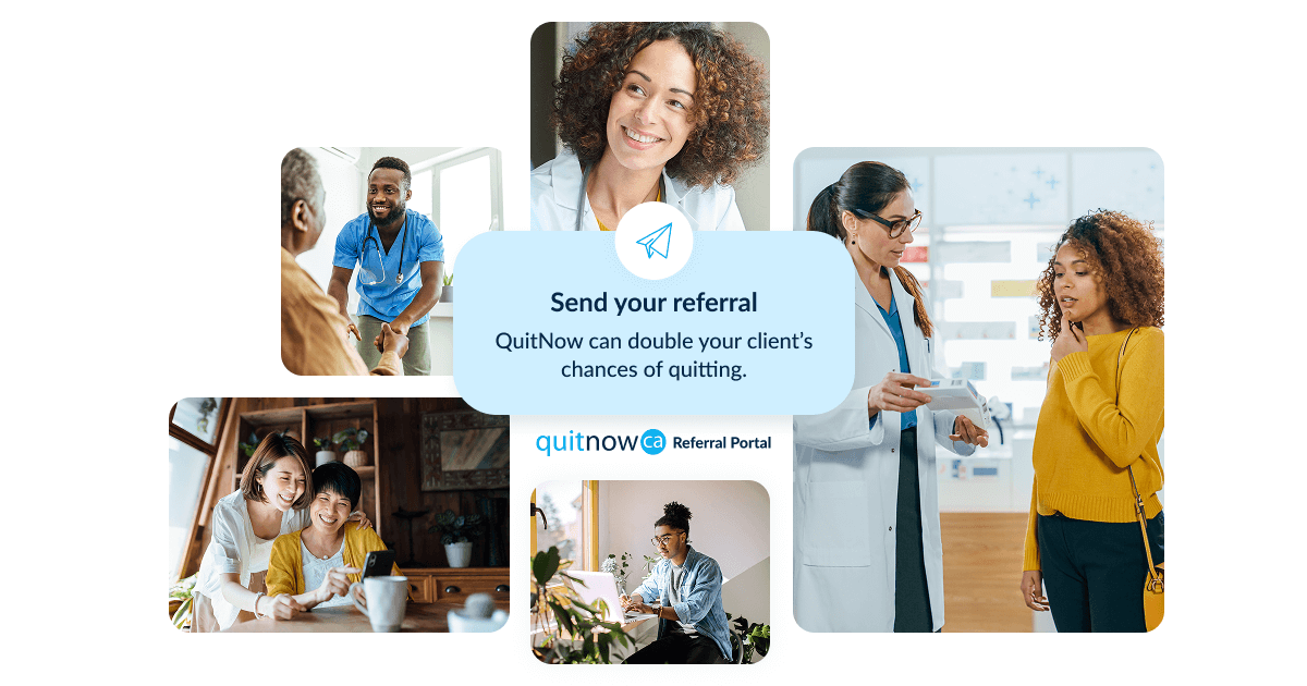 This portal is designed specifically for health and community service providers in British Columbia who wish to refer clients for cessation support. Your account on QuitNow.ca is for individuals who are seeking support for themselves, such as text and email tips, live chat with experienced coaches, and other resources.